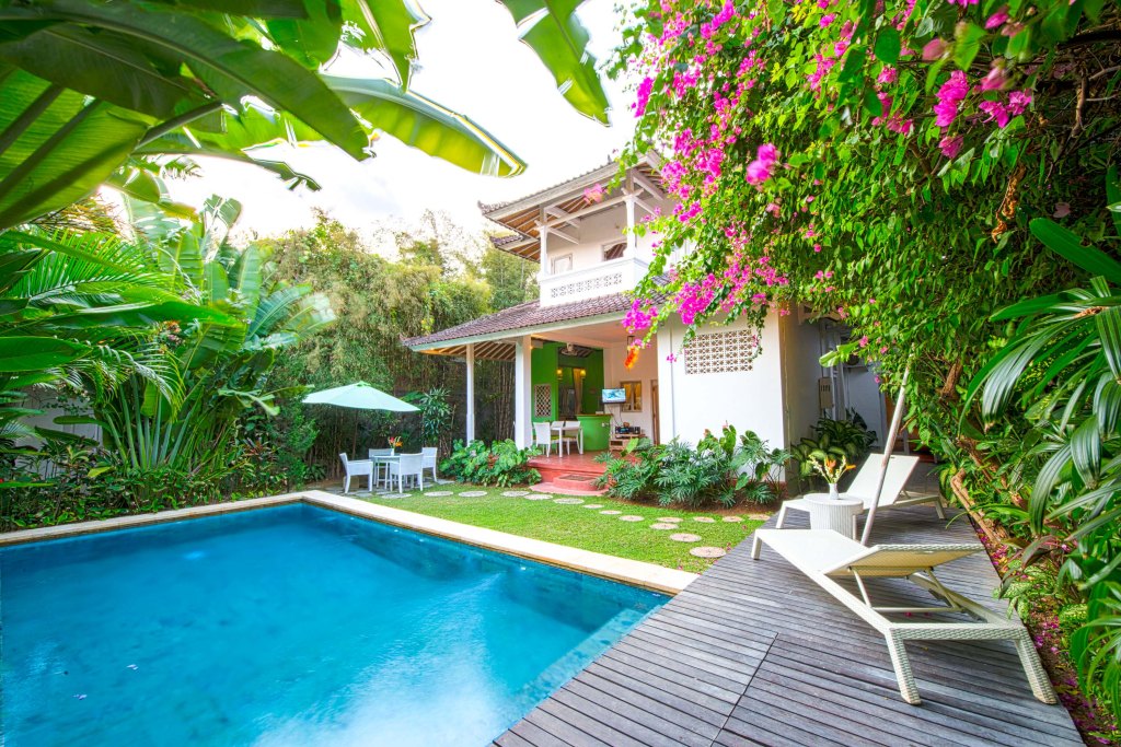 In Seminyak, with a quiet and safe neighborhood within a walking distance from the beach, shopping and dining places, you will find a villa with two floors. First floor has 2 air-conditioned bedrooms with large bathrooms attached, an open space large area living room with fully equipped kitchen within, close to a private pool with chaise longue and special sunbathe deck. And in the second floor has one more large bedroom with bathroom.